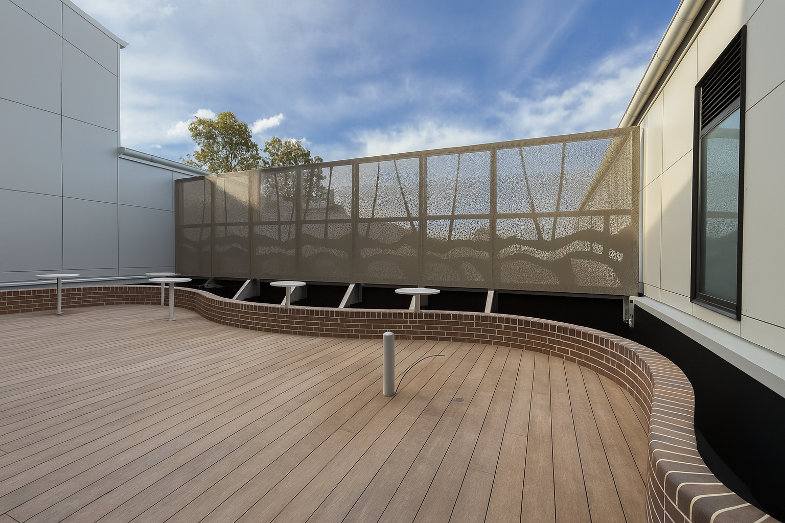 A showcase of architectural detailing and versatility. This project included the supply and installation of laser-cut aluminium screens, custom fencing, vertical battens,plantroom enclosures, and ventilation louvres. Each component was engineered to blend performance with design, contributing to a secure, stylish, and cohesive exterior.